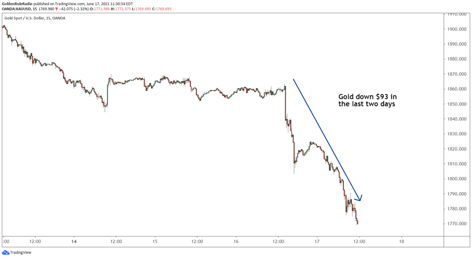 Gold took a hit this week, alongside the stock market, after Jerome Powell announced the Fed’s plan to mitigate hotter-than-expected inflation.