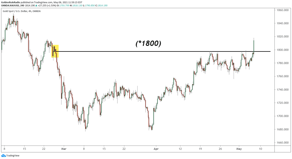 - After failing to push through $1,800 at least four times over the last few weeks, the price finally broke above. Higher prices are on the horizon.