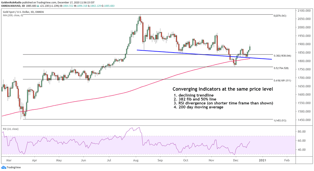 A number of indicators have converged over the last week to indicate the start of an upward trading channel. It is possible gold put in a bottom at the end of November, which would line up with traditional seasonal moves in gold.