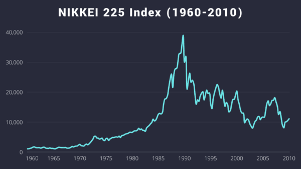 From January 1990 to July 1992, the Nikkei 225 stock index crashed 60%. Land prices also took a sharp turn, beginning a precipitous drop that would last for 20 years. In a matter of months, Japan’s miracle economy descended into chaos.