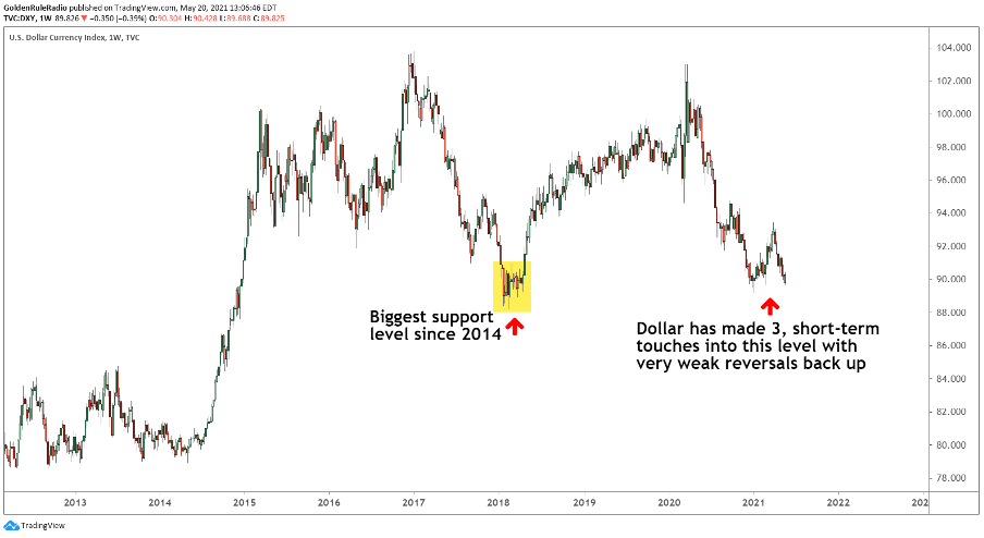 The U.S. Dollar Currency Index made its third break below 90 this year, putting more pressure on this strong support level. So far, the dollar has stayed above its 2018 lows.