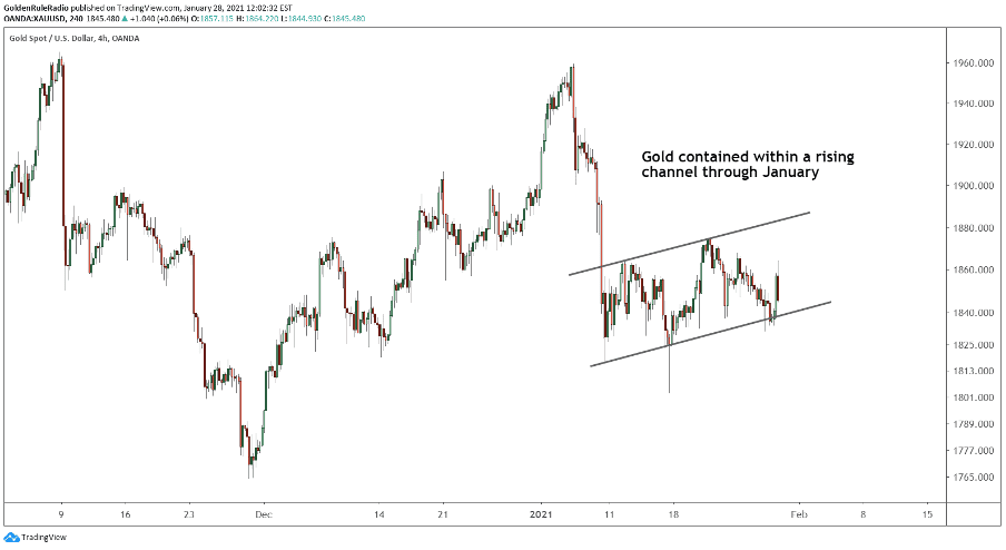 The gold price bounced on $1,830, and is now hovering around the key support level to $1,850. Gold is firmly planted inside the rising channel that has guided the price this month.
